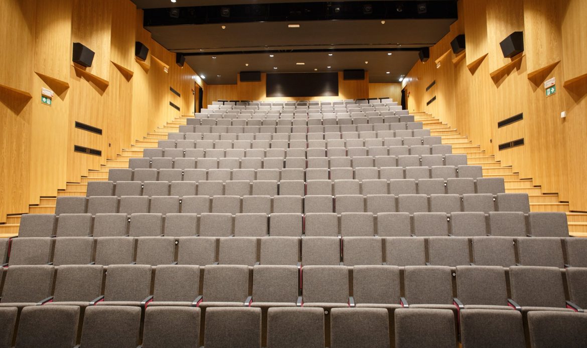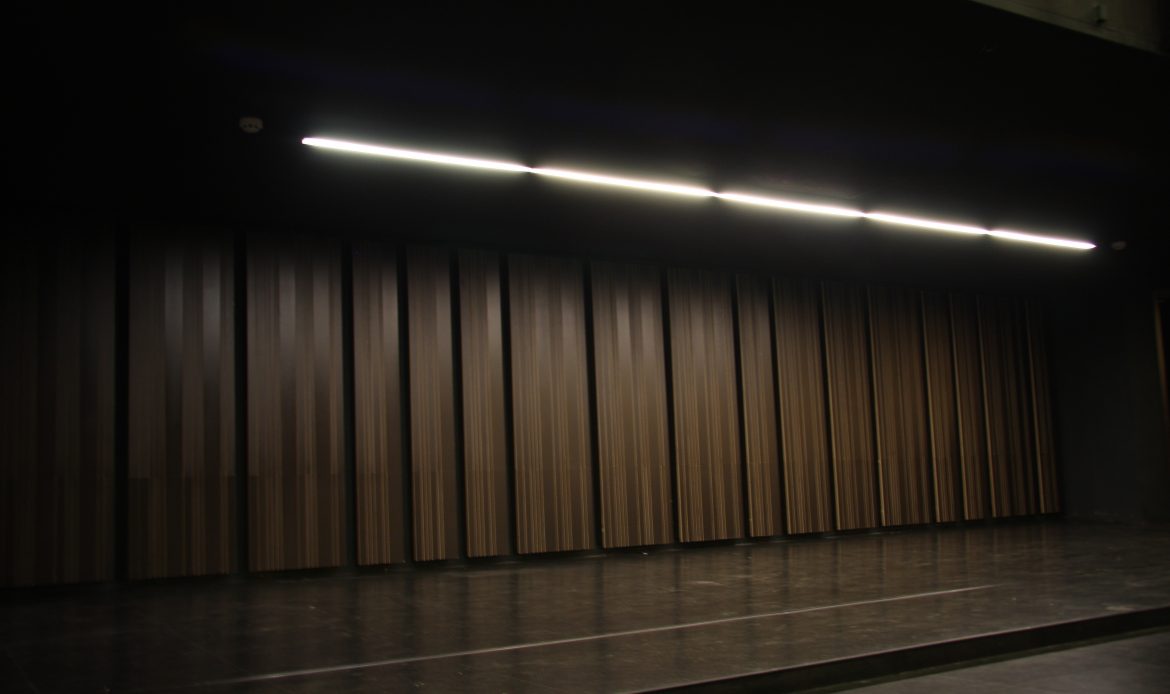 V Kulturnem domu Šentjur smo preuredili akustično ureditev prostora s težko gorljivo oplemeniteno iverno ploščo in mineralno volno.