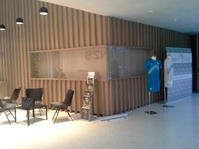 Na NZS smo preuredili akustiko v hodniku in sejni sobi. Uporabili smo furnirano vezano ploščo in težko gorljiv lak.