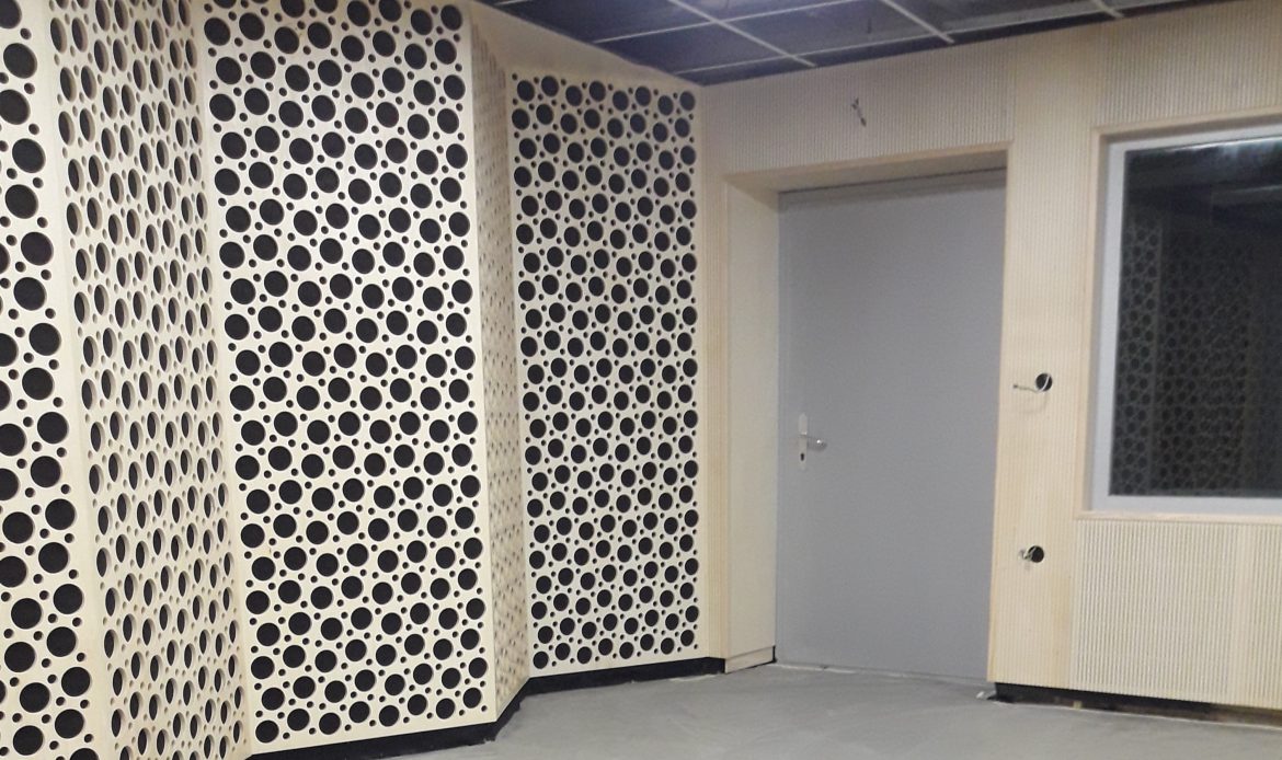 V Sinro studiju RTV Slovenija smo uredili akustiko z vezano ploščo, ki je bila prebarvana z težko gorljivim lakom.