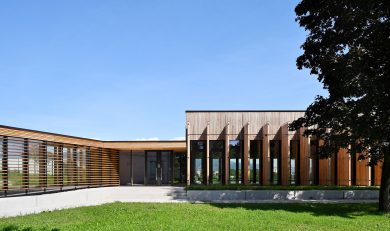 Na vrtcu Murglje smo obnovili zunanjo leseno fasado s termično obdelanim macesnovim lesom, katerega smo premazali s končnim vodnim lakom.