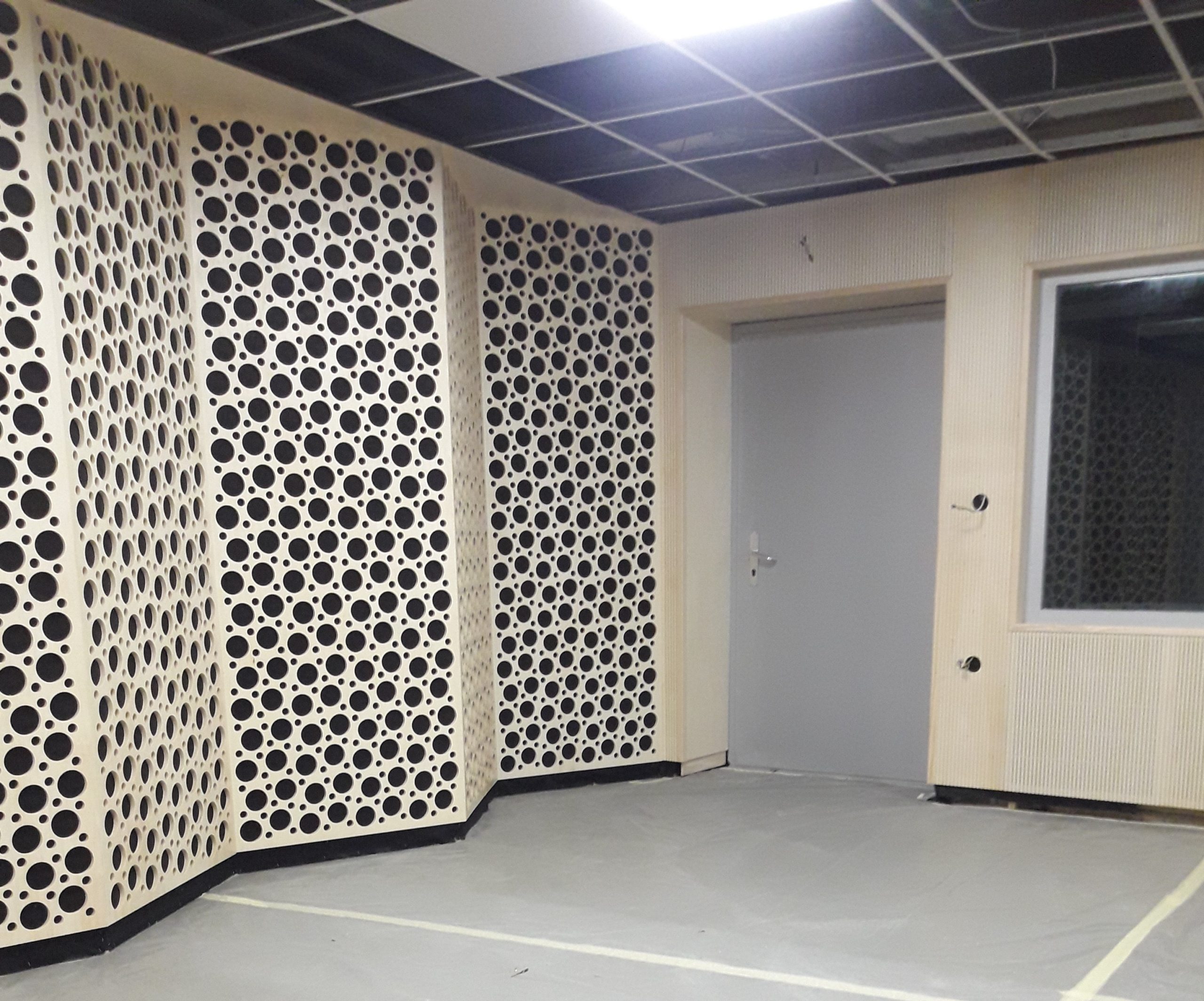 Za naknadne izboljšave v obstoječih prostorih pa izvajamo celovite projekte vključujoč meritve, načrtovanje in izvedbe sanacij prostorske akustike.